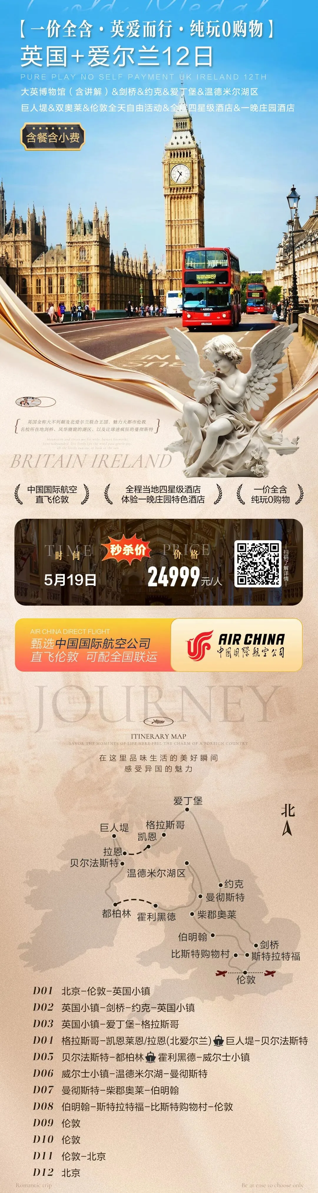 【一价全含·英爱而行·纯玩0购物】英国爱尔兰12日