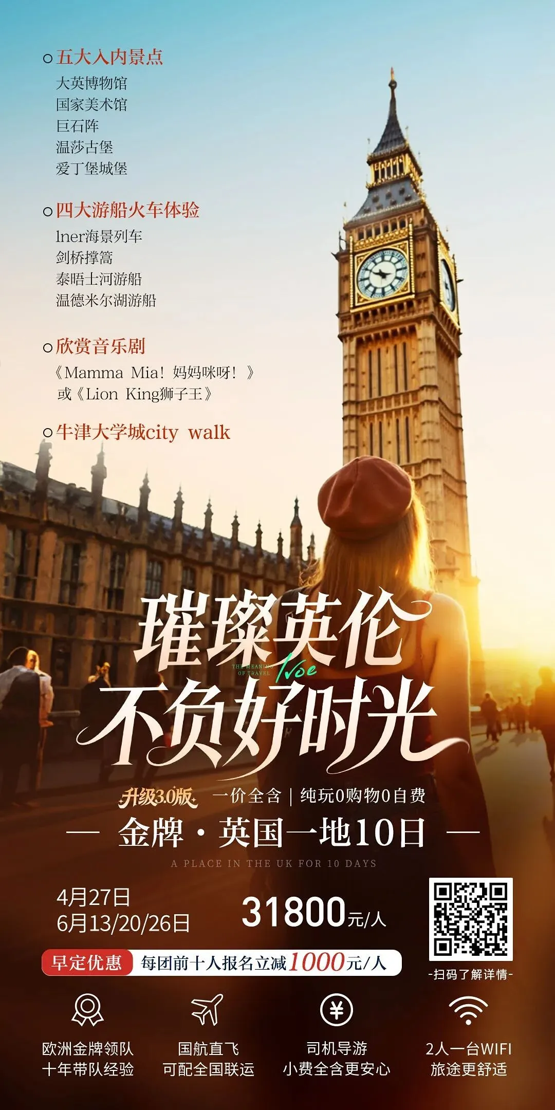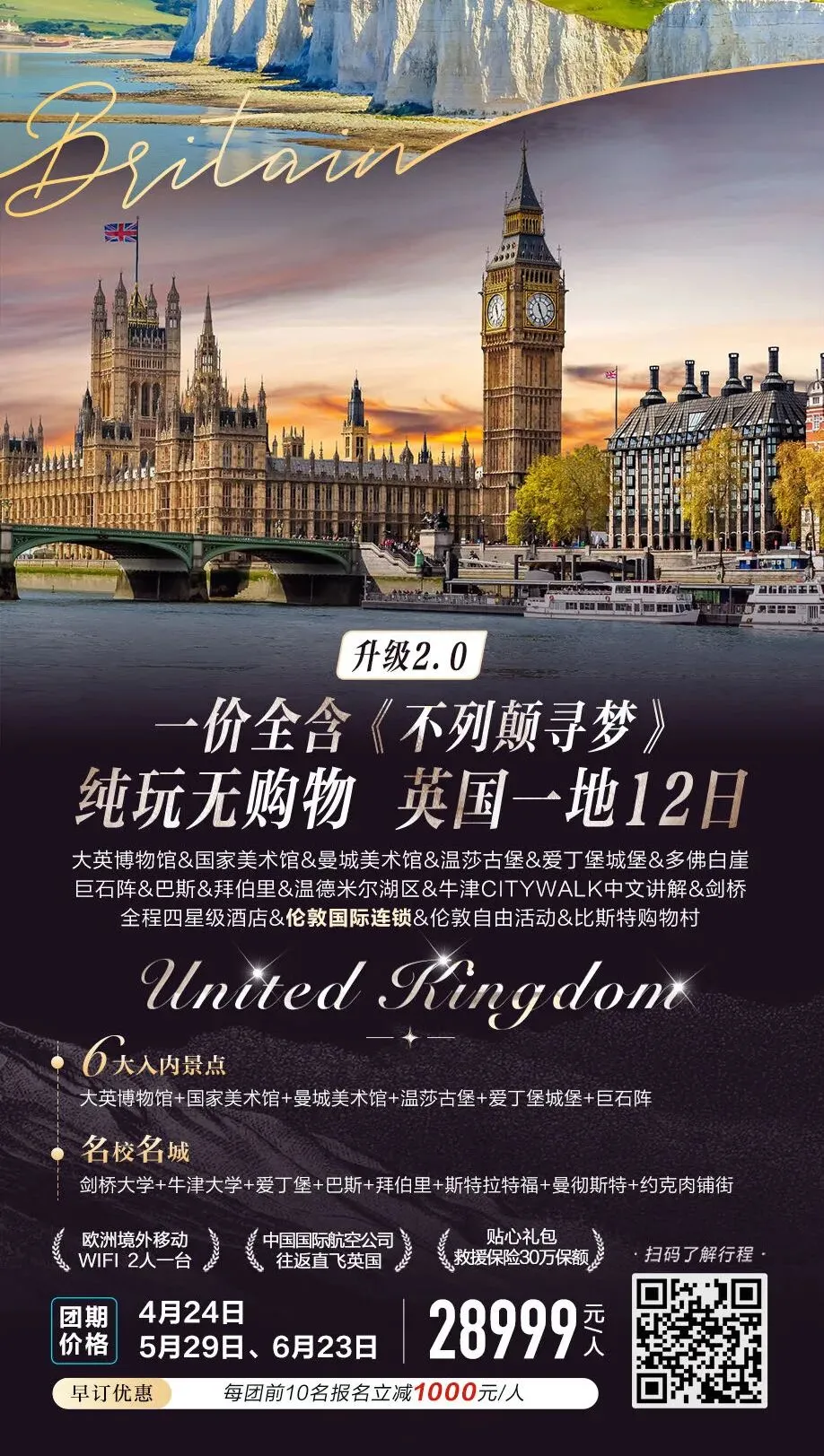 4-6🈷️ 升级2.0🌟【不列颠寻梦·一价全含】纯玩无购物 英国一地12日
