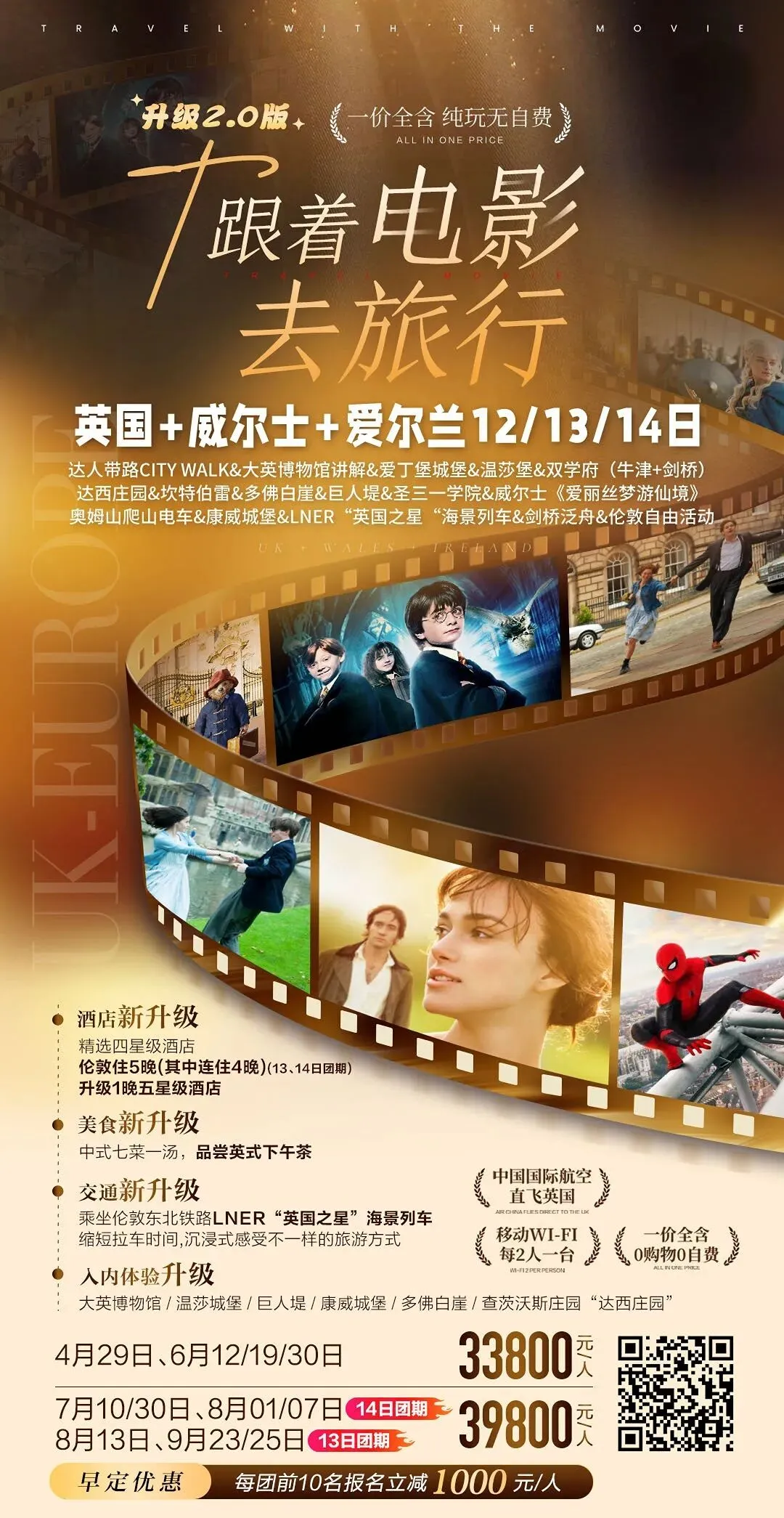 4-9🈷️【跟着电影去旅行 一价全含】英国+威尔士+爱尔兰12/13/14日 纯玩无自费