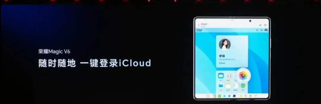 荣耀Magic V6还支持iCloud在折叠屏上一键登录,随时查看苹果的相册。