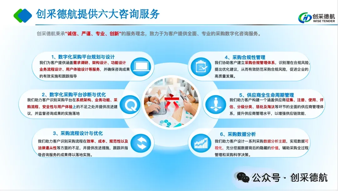 大连创采德航信息技术有限公司是一家专注于企业采购数字化咨询服务的企业,秉承”诚信、严谨、专业、创新”的服务理念,致力于为客户提供全面的采购数字化转型解决方案。