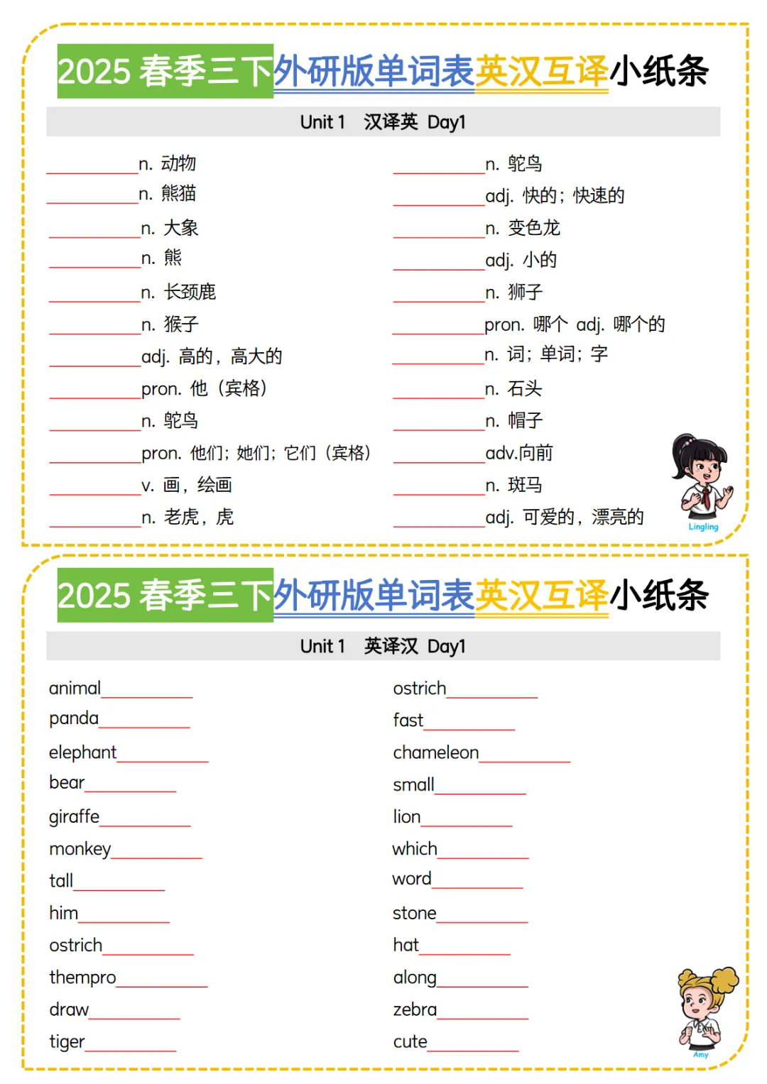 【免费下载】三年级下英语单词表英汉互译小纸条《外研版(三起)》,PDF电子版,可打印,共9页
