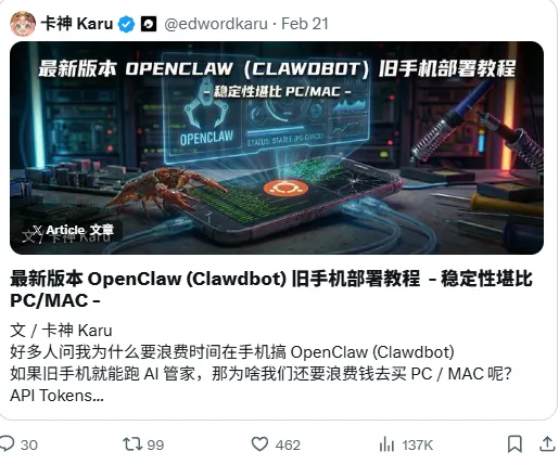 推上有人专门写了旧手机部署教程,说稳定性堪比PC。优点是完全免费,缺点是需要保持插电状态,并且性能有上限。
