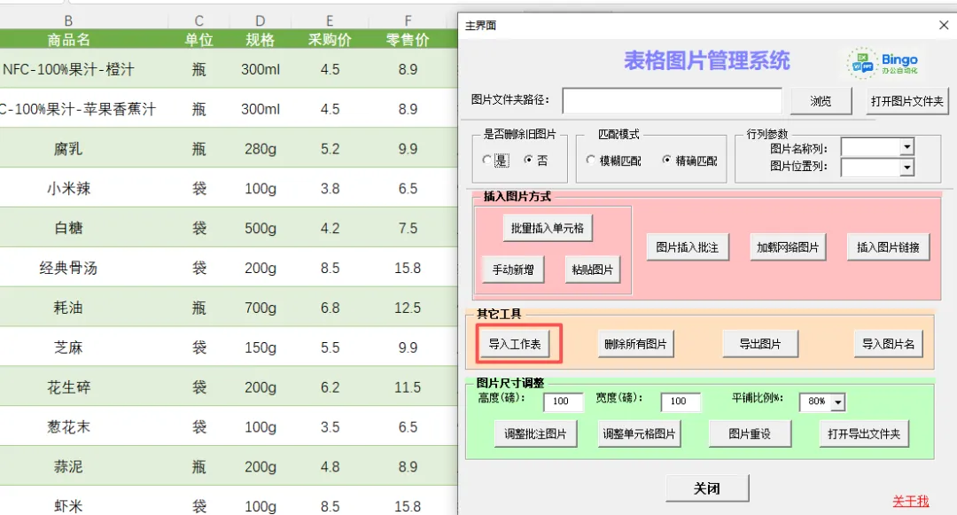 指定一下存放图片的文件夹地址,设置一下图片名和表中商品名对应的列,设置一下图片插入到哪一列