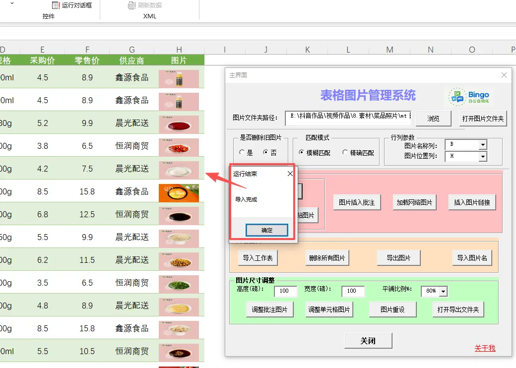 稍等一下,200多张商品图片就准确插入到对应商品中了!