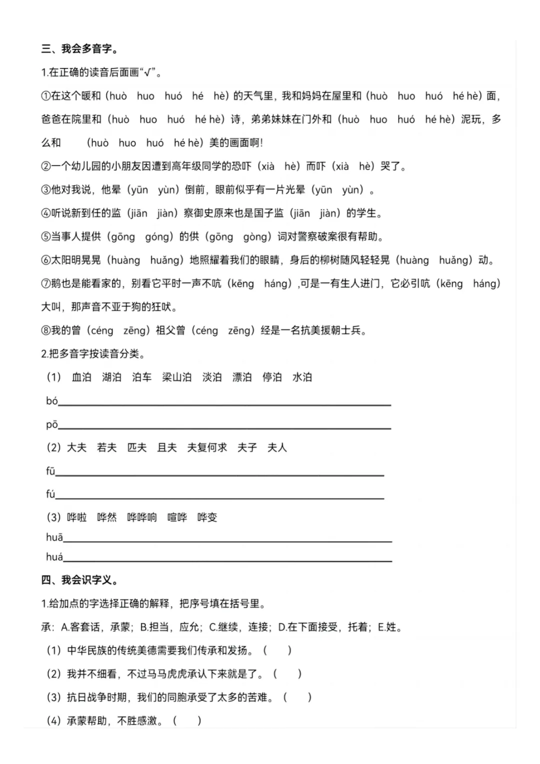 五年级下语文期末生字专项练习