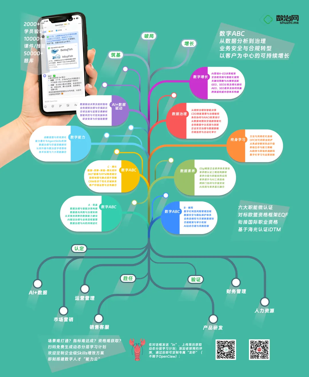 正因于此,数治网shuzhi.me助力个人和组织从数据素养打造开始,构建匹配业务场景的能力矩阵,来打造面向未来的数字能力: