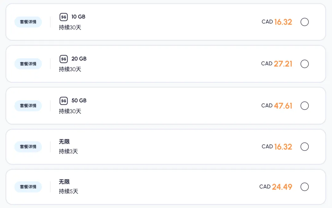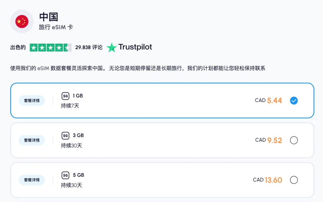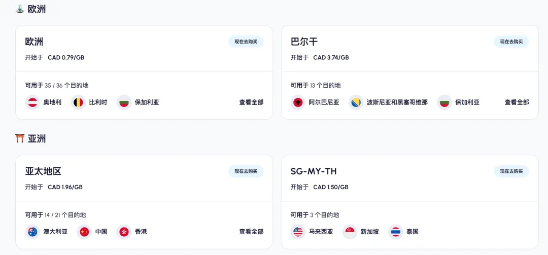 如果是多国旅行,还可以直接买区域套餐。例如,亚洲通用、欧洲通用,一个套餐可以用很多国家。
