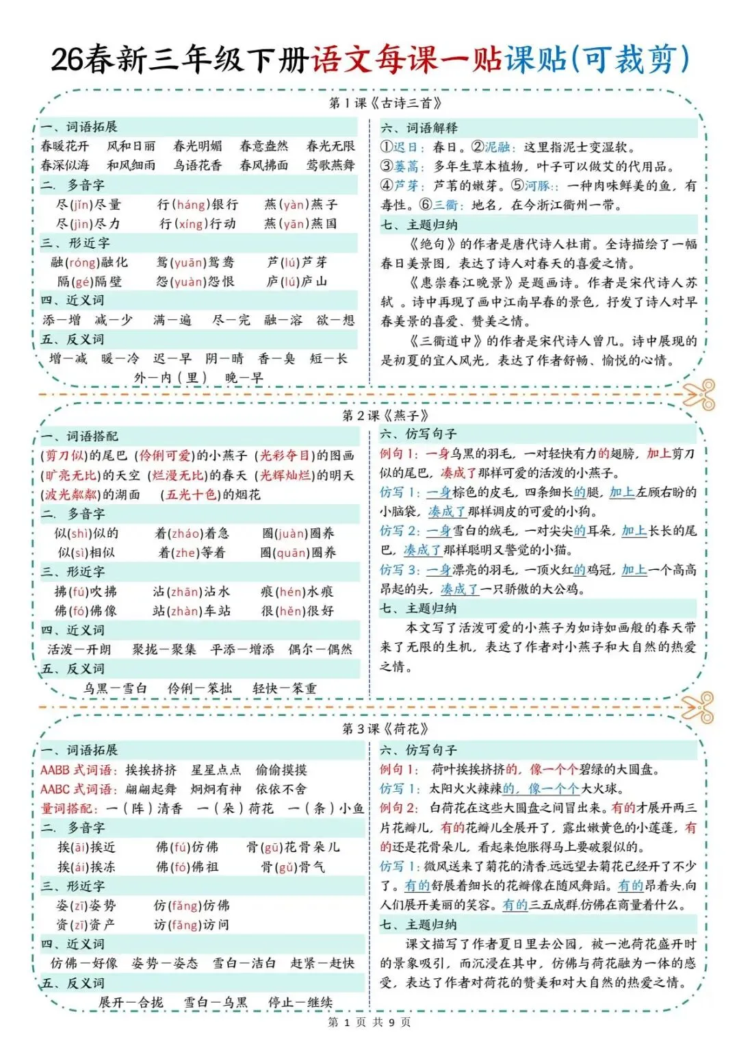 26春三年级下册语文知识点彩色课课贴(可打印)