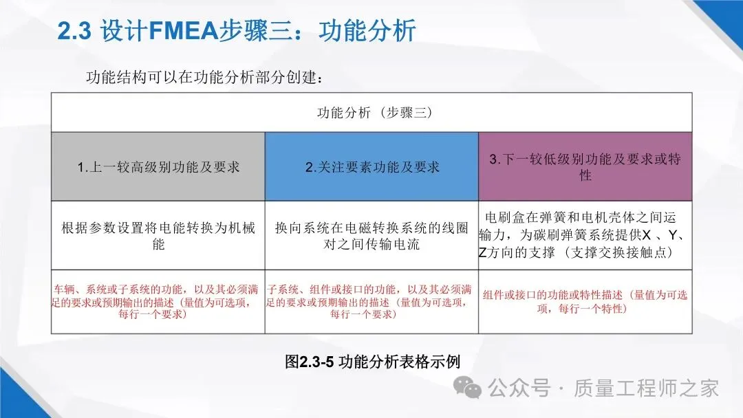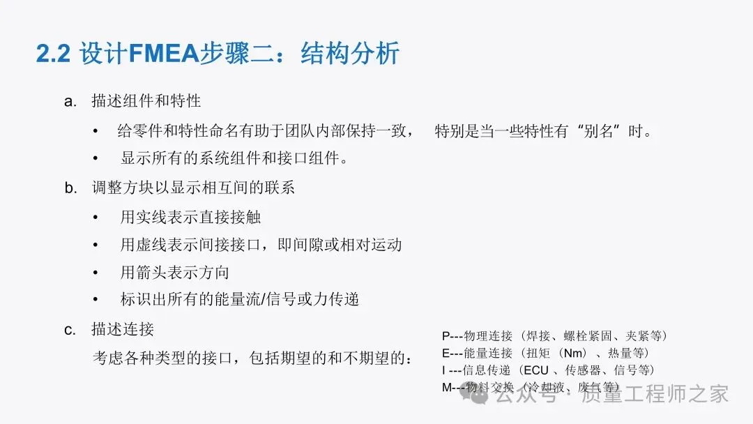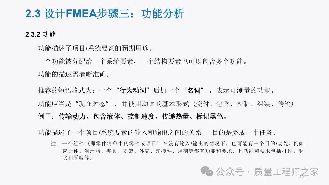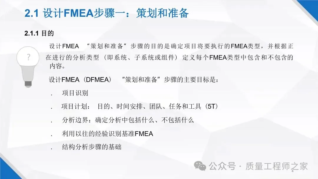 DFMEA 是提升产品设计质量的关键工具!这份 PPT 详细介绍 DFMEA 的执行步骤,从策划准备、结构分析,到功能、失效、风险分析,再到优化和结果文件化,每个步骤都配有丰富的示例。助你精准识别设计风险,采取有效措施降低风险,提升产品设计的可靠性。私信获取,让产品设计更可靠!