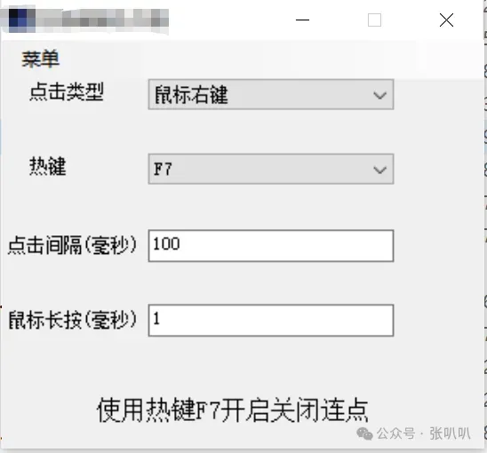 是一款轻量级、易用的自动点击工具,主要功能和特点如下:没有复杂的功能,只有连点,设置F1-F12进行点击!!!大小100KB。