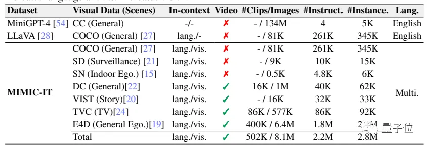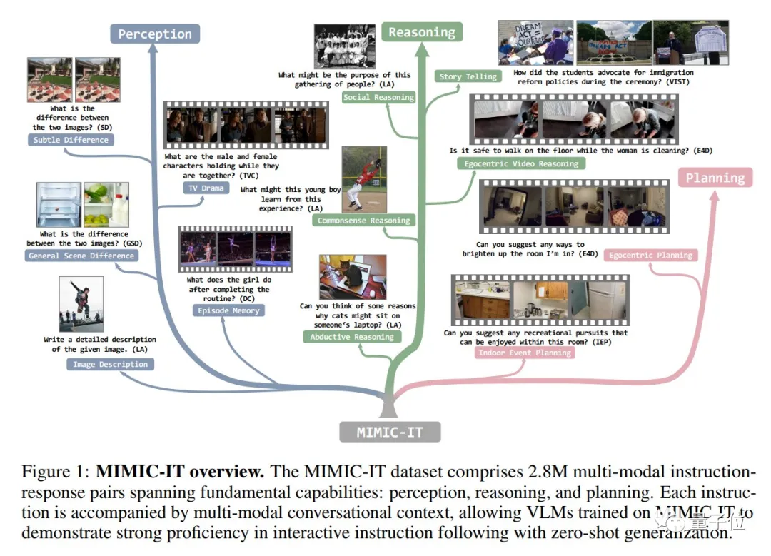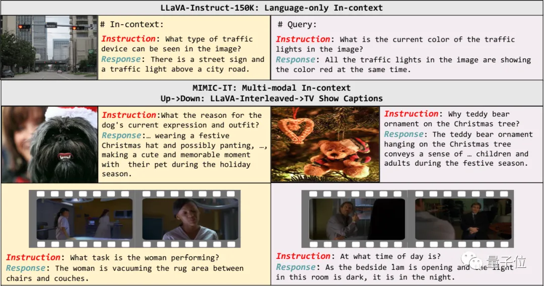 MIMIC-IT涵盖了大量的现实生活场景,而且不同于传统的LLaVa等只有一张图片和语言描述的数据集,MIMIC-IT包含多种模式。