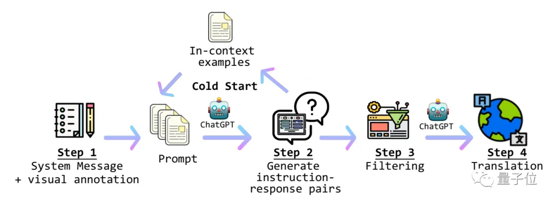 生成好的prompt会被传递给ChatGPT,得到指令-回应数据。