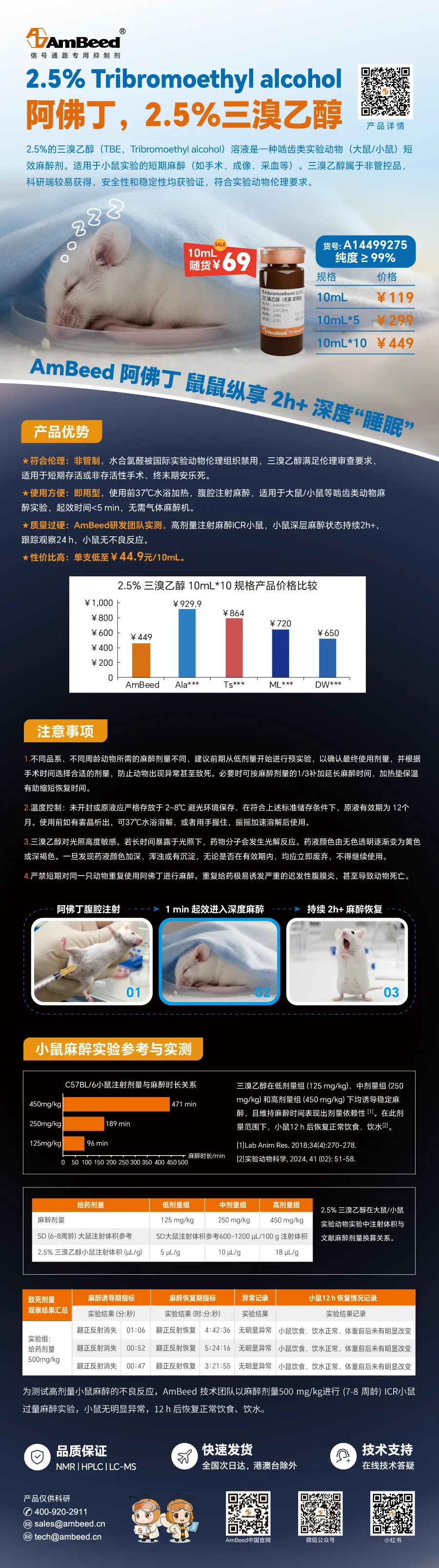 本文最后更新于2026-03-13,某些文章具有时效性,若有错误或已失效,请在下方留言或联系老夜。 AmBeed阿佛丁,科研人必备麻醉神器! 🐭AmBeed阿佛丁,科研人必备麻醉神器! 🤗 非管制·符合伦理 · 小鼠/大鼠短效麻醉首选 💤腹腔注射,1分钟起效,深度睡眠持续2h+