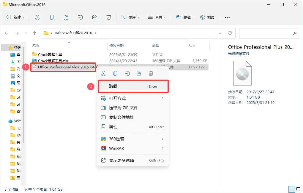 2.找到Office Professional plus 2016 右击鼠标选择装载
