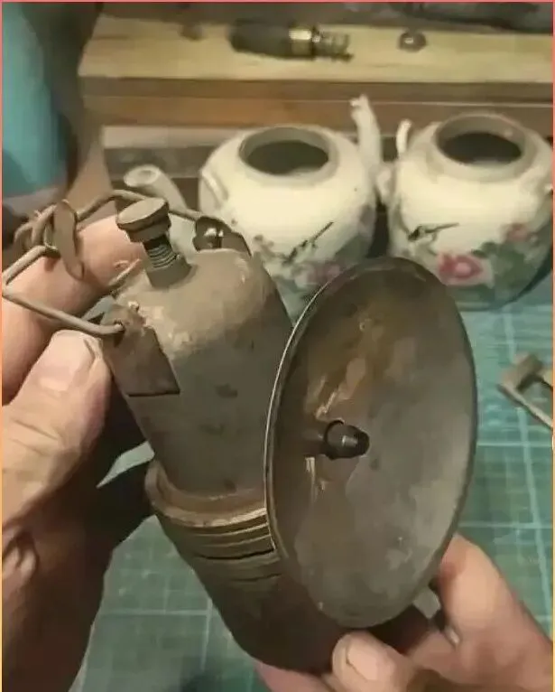 图中这铁疙瘩叫矿灯,前面一张圆圆的反光盘,后头是小罐一样的壳,顶上拧个螺丝帽,侧边还有个弯钩挂在胸前或帽檐上,黑咕隆咚的巷道里就靠它照个亮,灯嘴一拧火苗往前探,光是白里带黄的,近处看得清,远一点就虚,爸爸说他年轻下井的时候,手一抬就是这盏灯,煤粉一扑脸,灯罩上立马糊一层灰,抹一下又亮一点,那时候没有手机也没有头灯,一盏灯就是命,现在看着旧,可拿在手里心里还是一沉。