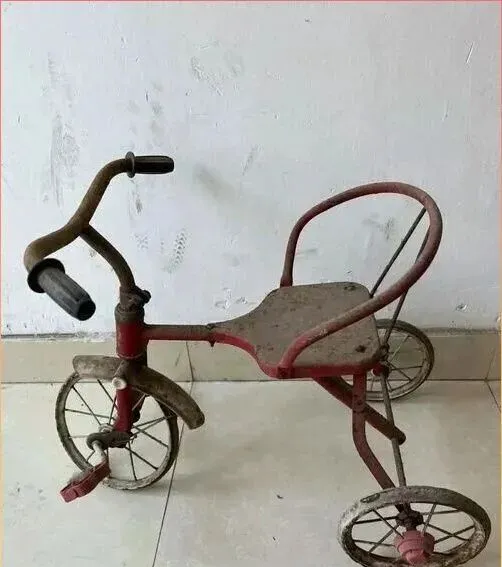 这个红漆掉得斑驳的小车叫儿童三轮车,车把一握能转个半圈,前轮大后轮小,踏板是铁的,脚一上去“哗啦啦”转,轴承不太灵的时候会吱一声,我的童年最好的一段就在它身上,巷子口夕阳斜着照,爸在远处喊别往沟里蹿,我偏要冲一把,朋友轮着骑,摔倒了膝盖破点皮,抹把土照样笑,那会儿的快乐真简单,现在孩子车子功能多声音也花哨,可这辆旧三轮一出场,记忆里那股风还在吹。