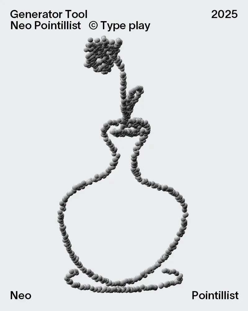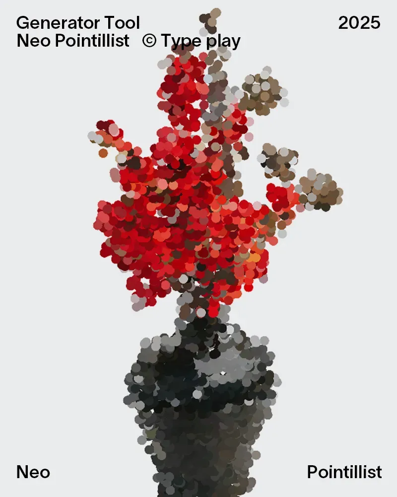 通过界面中的参数调节点的大小、色彩、分布、散布程度等设置,自定义输出效果,实现类似点彩(点状)艺术作品的视觉风格。它提供了丰富的调整选项,让用户能灵活控制点阵密度、颜色渐变和渲染精度等,便于探索个性化的生成式艺术表达。最终作品可以导出为JPG、PNG、SVG 图像格式,适合用作海报、包装图形或视觉灵感素材。操作直观、无需安装,在浏览器中打开即可快速体验点彩风格图像创作。