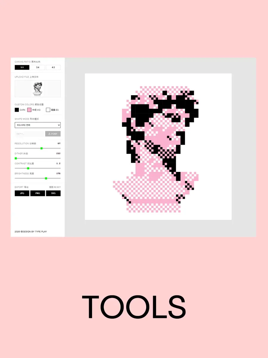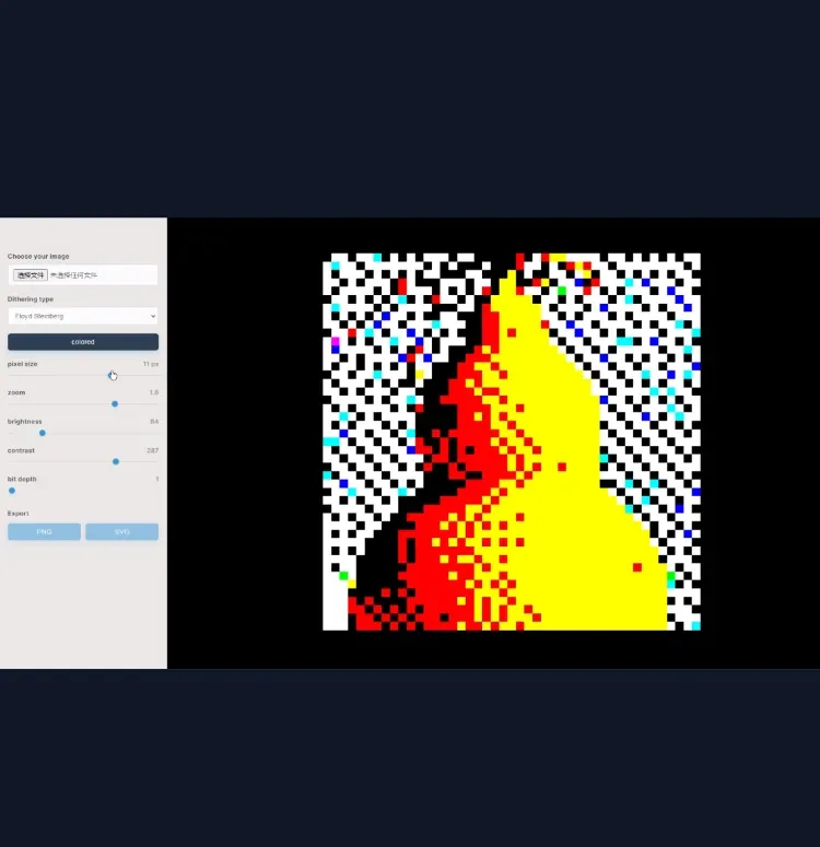 Dither 算法图形生成工具,这款工具能够将任意图片,包括非常小的图片,转换成像素级别完美的矢量图形。生成的图像不仅保留了原图的轮廓与细节,还附带极具设计感的像素化风格,使每一幅作品都充满独特的视觉魅力。不论是用于平面设计、网页插图,还是产品包装、宣传海报,都能够轻松应对各种场景需求。同时,工具支持将最终作品导出为SVG矢量格式,保证图形在任意尺寸下都能保持高清和清晰,无论放大还是缩小都不会失真。