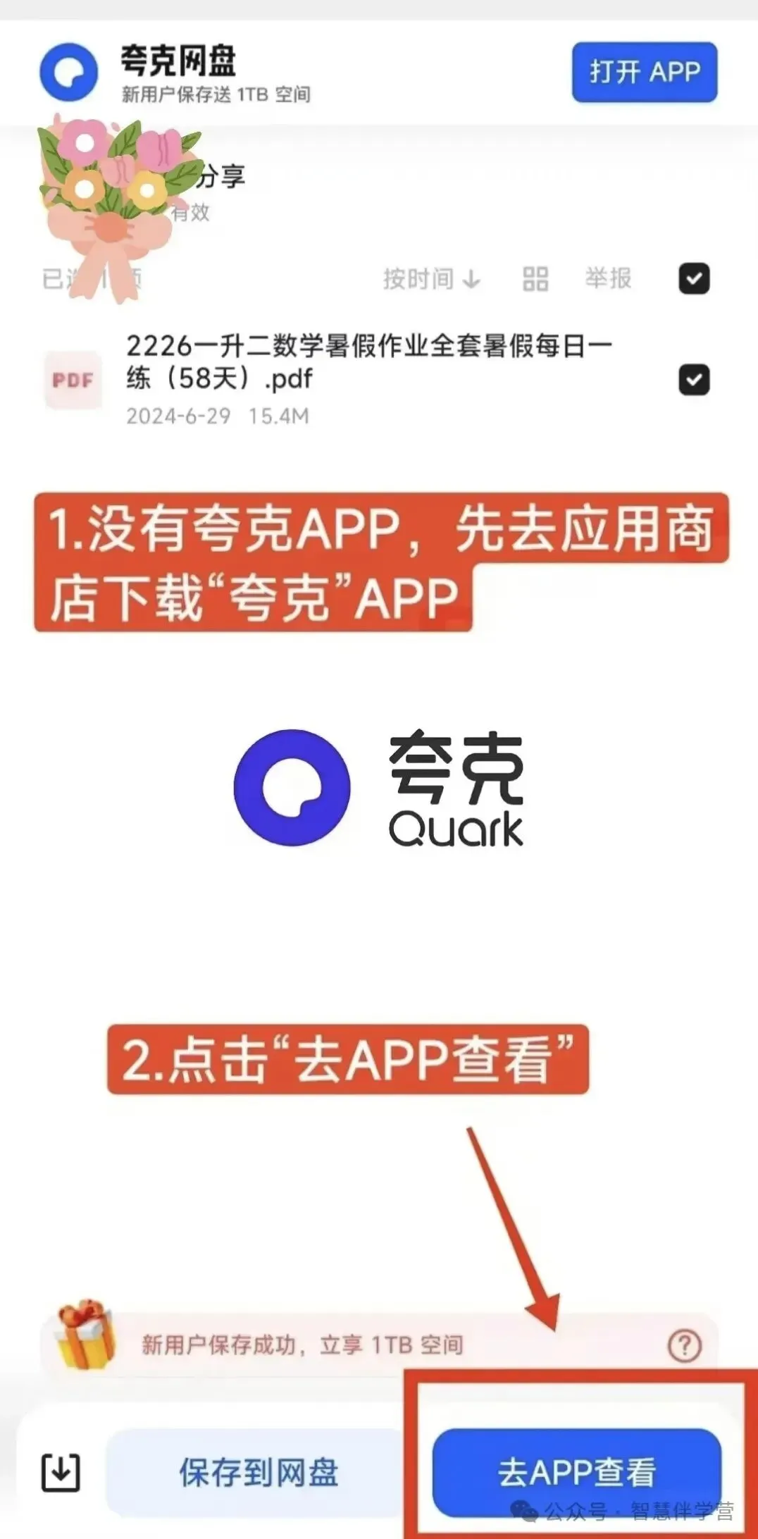 电子版下载使用教程 1.先关注“小初高A+”公众号,然后发送消息 (温馨提示:图片中的箭头仅做演示用,请根据自己所需选择相应的年级段以及科目) 2.✅夸克网盘如何保存→打印 【方法一】 《无夸克的话先下载夸克手机号注册 可以下载保存》 3.✅夸克网盘如何保存【方法2】 4.✅夸克网盘如何保存【方法3】 温馨提示:以上所有资料保存都是免费