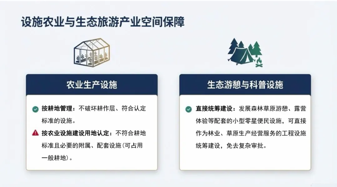 对设施农业和生态旅游产业释放了明确的空间支持信号: