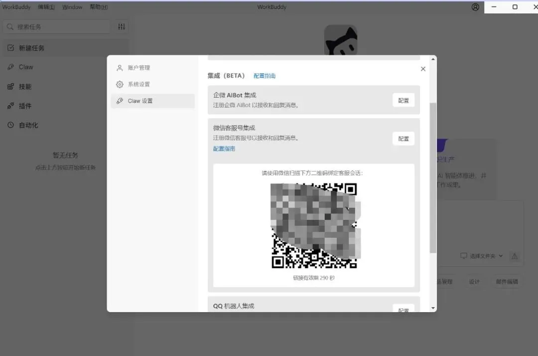 新版WorkBuddy简化了微信绑定流程,跟着点就行: