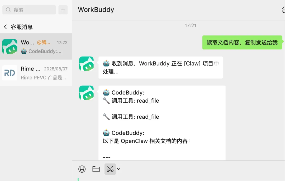 目前唯一小遗憾是还不能直接跨APP传文件,但可以读取文档内容,以文本形式发回微信,日常办公完全够用。