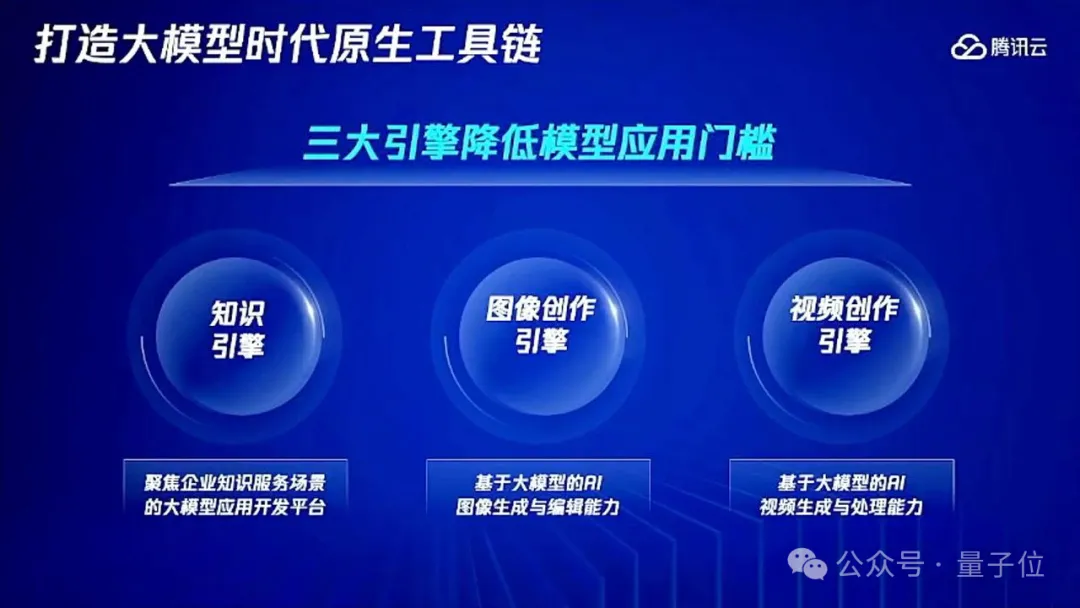 在腾讯云生成式AI产业应用峰会上,鹅厂一口气发布腾讯混元大模型最新进展、三大引擎工具、以及全面升级的腾讯云TI平台等。