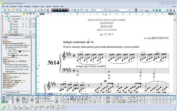 MagicScore Maestro提供十多种音符输入方式,支持电脑键盘、鼠标、MIDI键盘、虚拟乐器等多种输入,操作简单易用,还可灵活编辑乐谱元素、精细调节音频播放,并能导出高品质MP3、WAV格式音频。