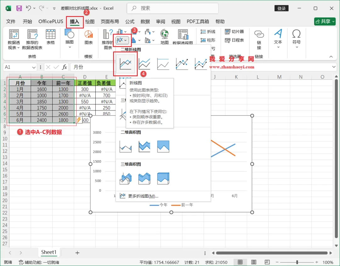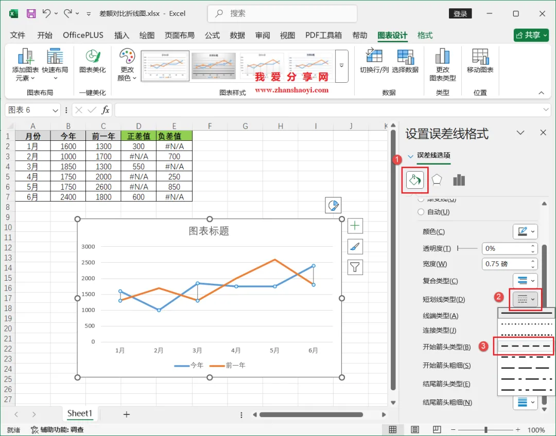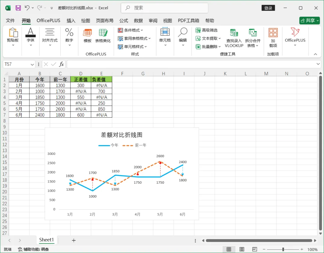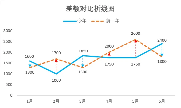Excel2024图表技巧之差额对比折线图,适合呈现多周期的同环比