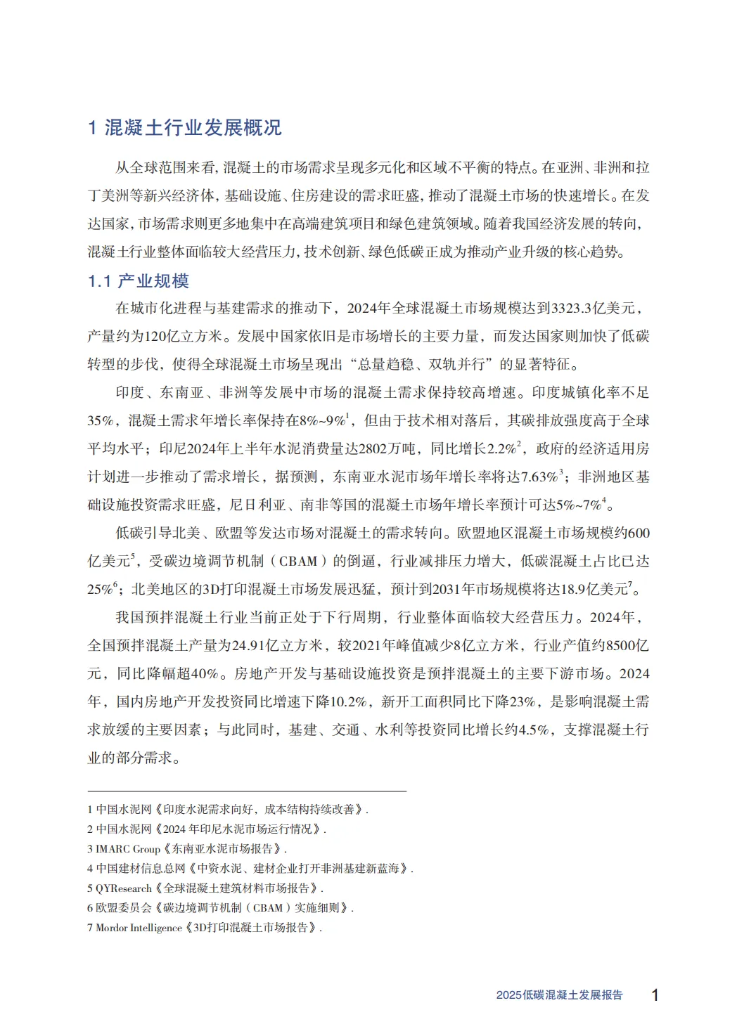 全球市场:2024年市场规模达3323.3亿美元,产量约120亿立方米。新兴市场(如印度、东南亚)需求增长快,但碳强度高;发达国家(如欧盟)低碳混凝土占比已达25%。