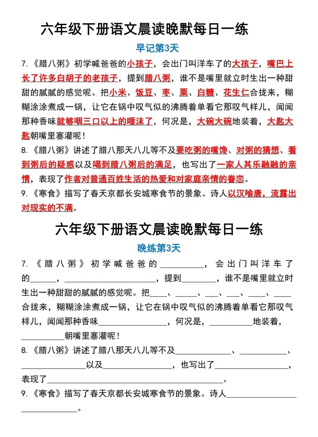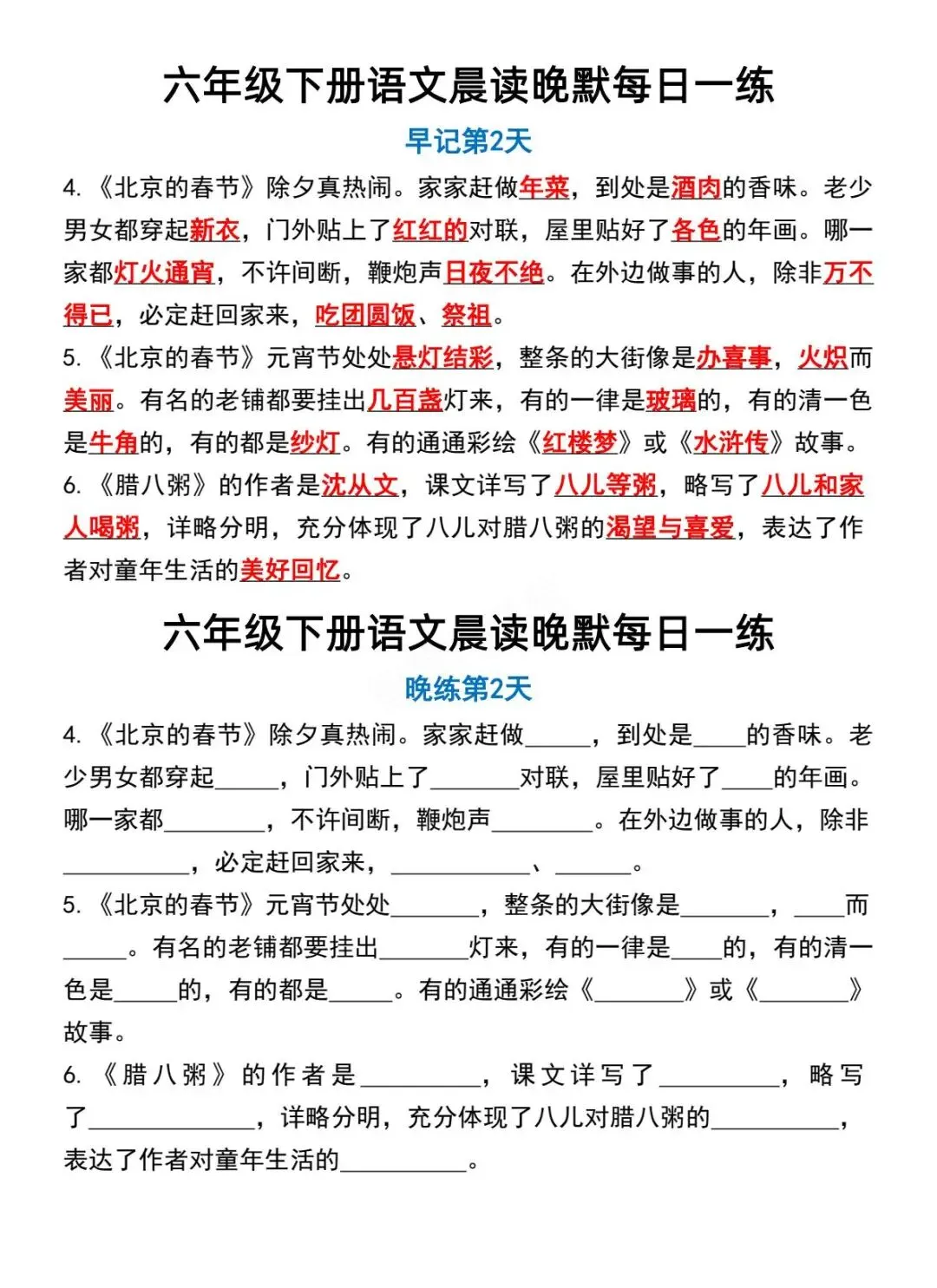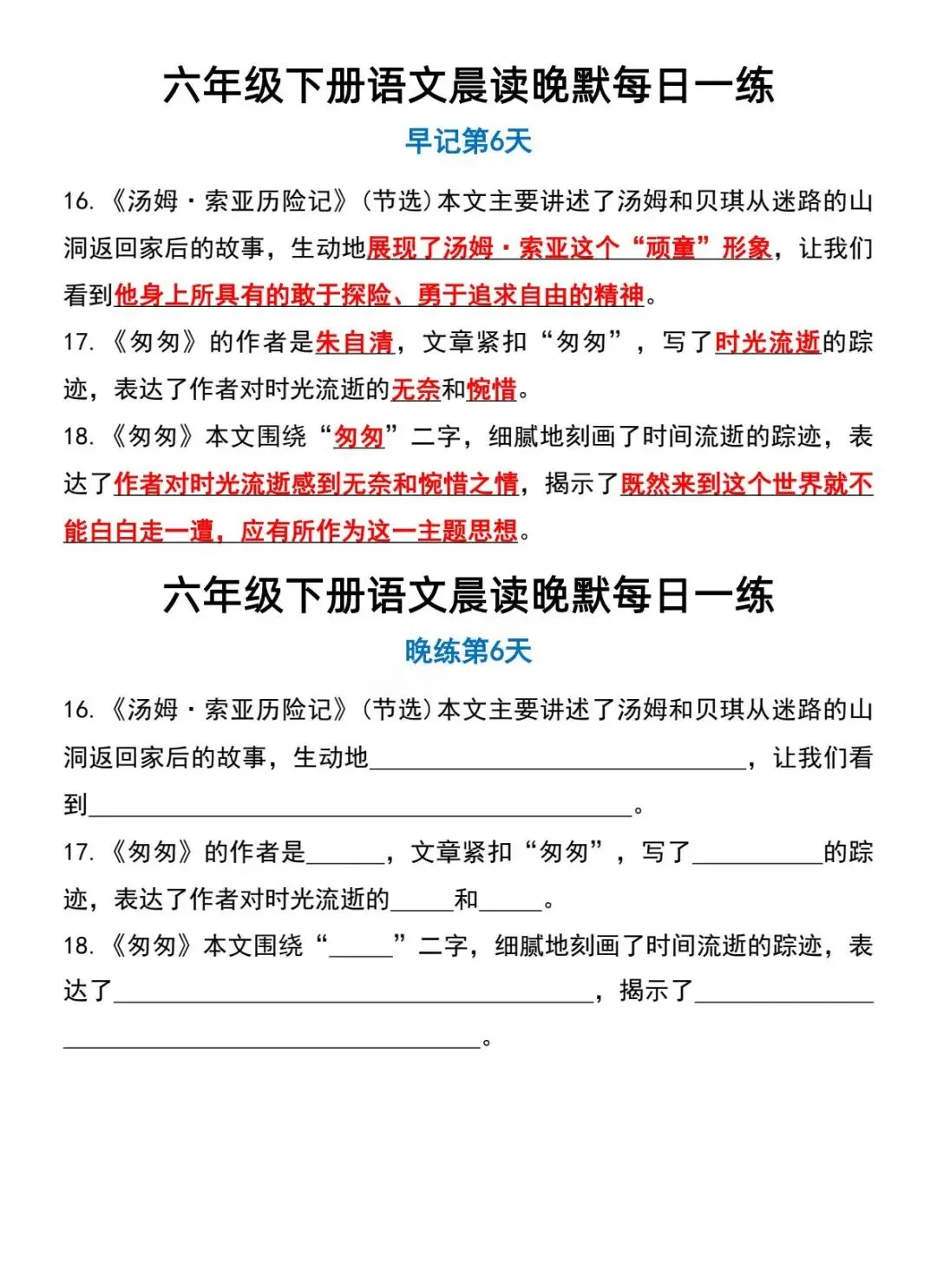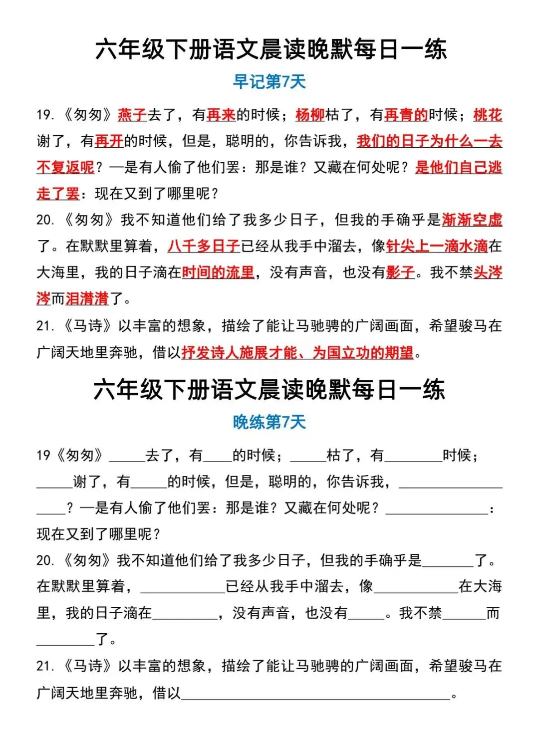 六年级下册语文晨读晚默-电子版可打印