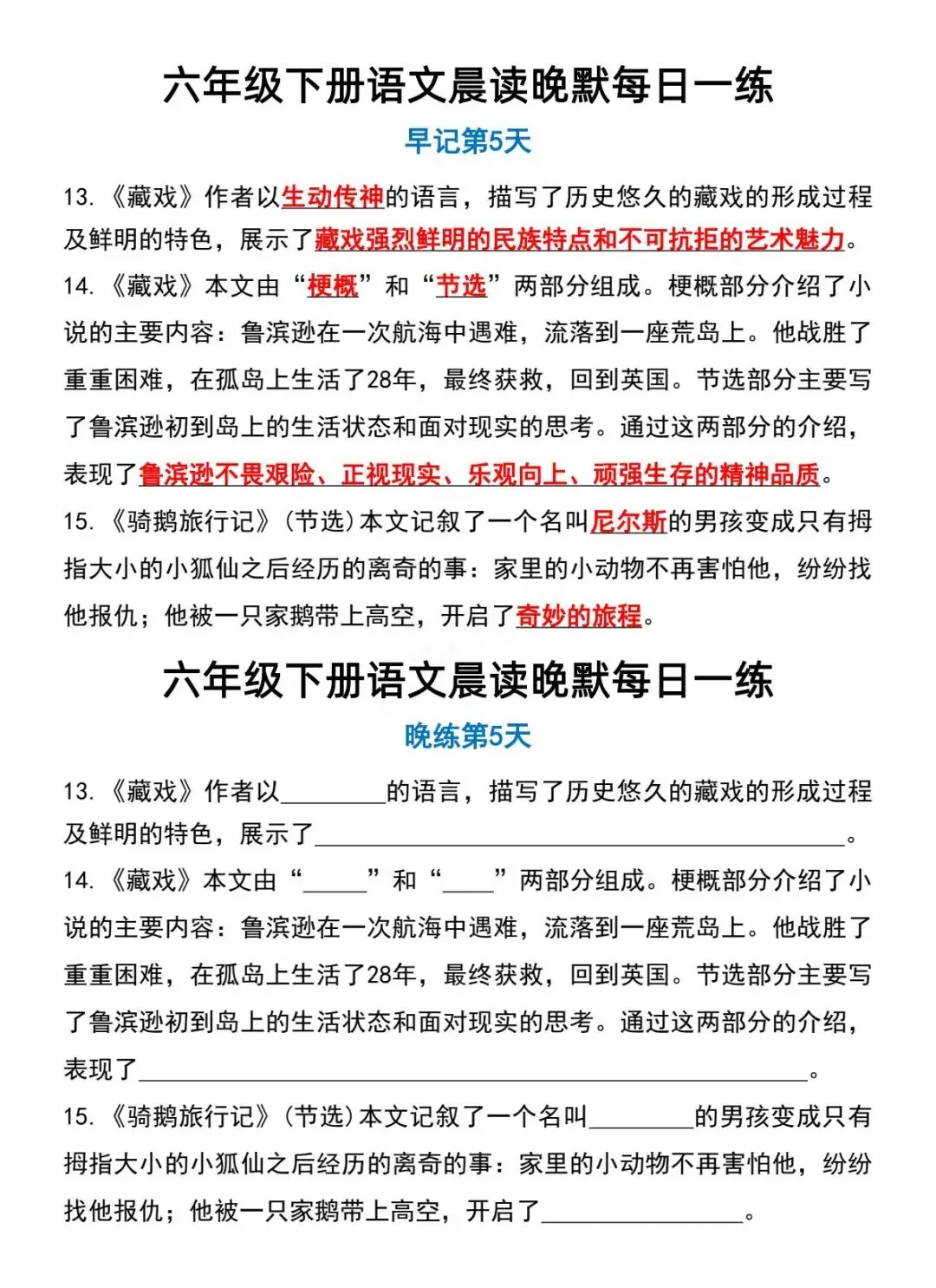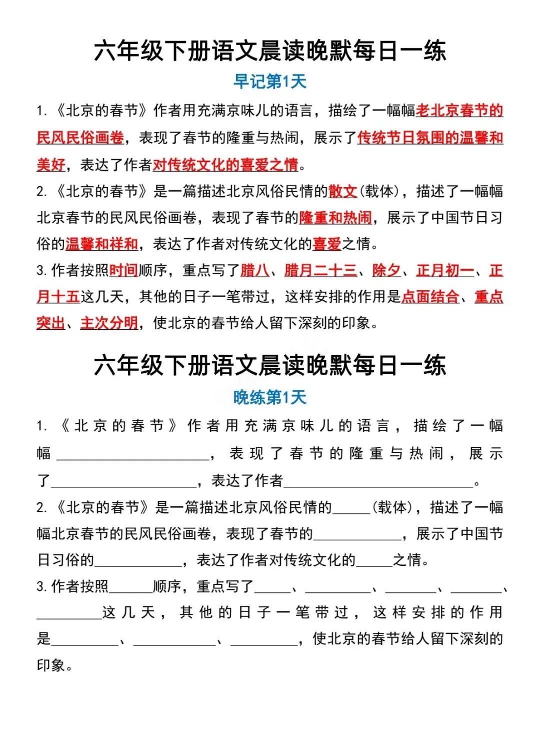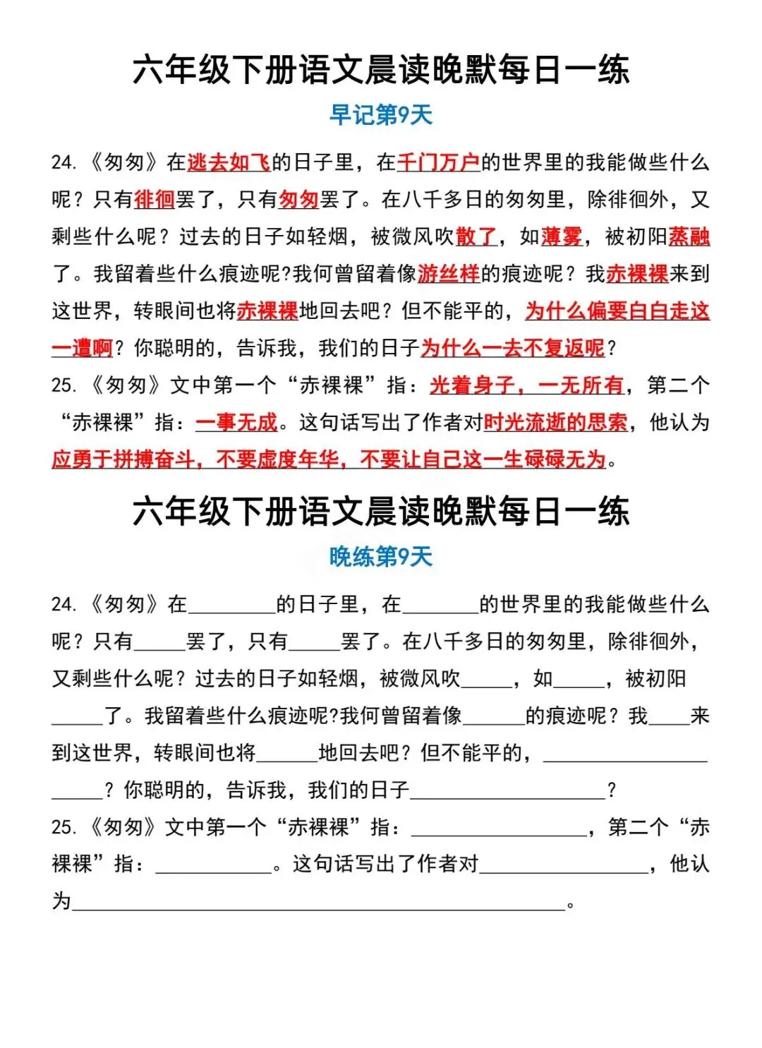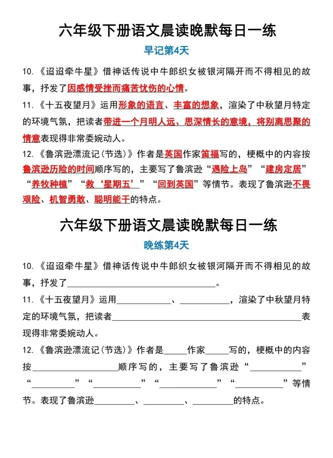 六年级下册语文晨读晚默-电子版可打印