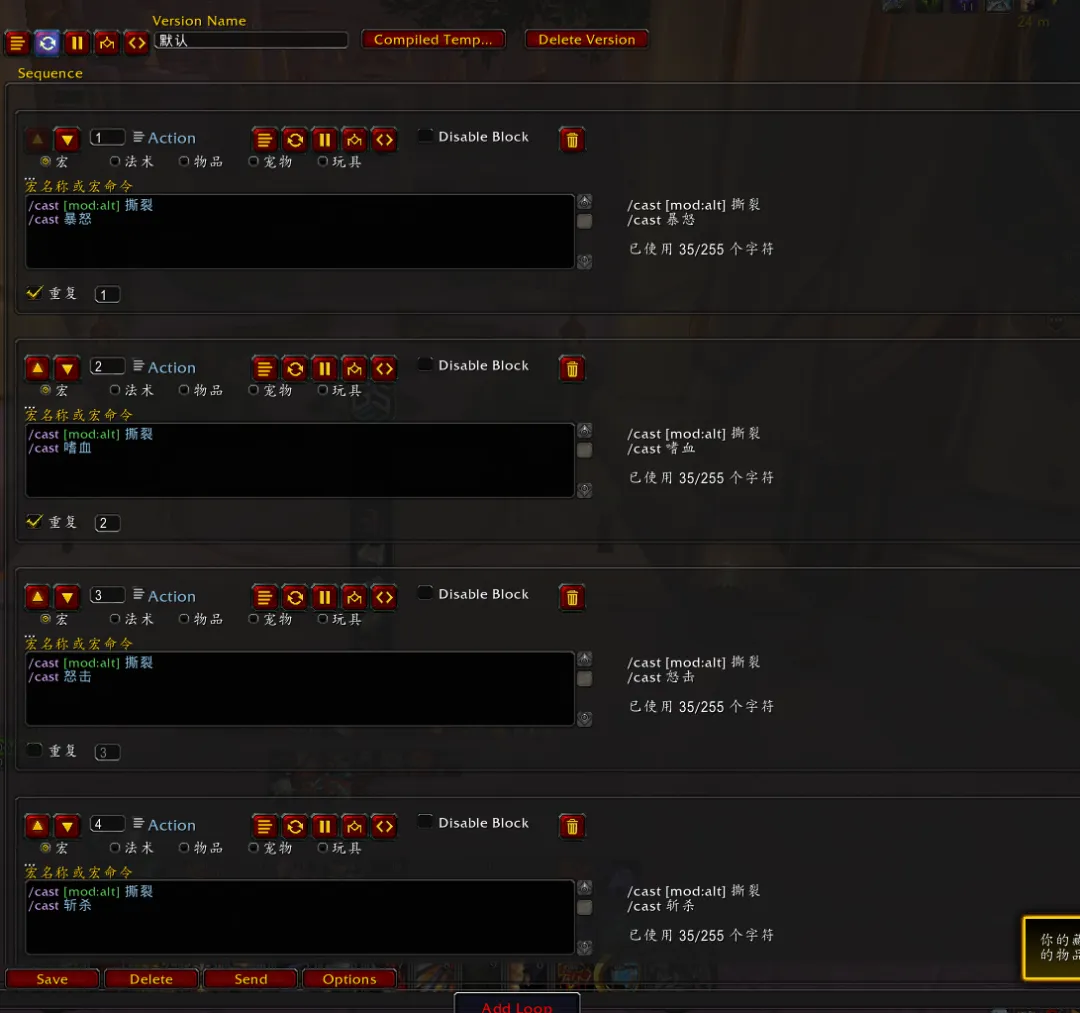按键1#showtooltips/castsequence 旋风斩,暴怒按键2#showtooltips/castsequence 旋风斩,嗜血.......
