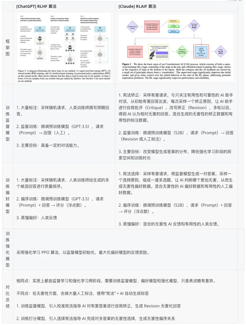 如前所述,有别于 ChatGPT 的 RLHF 算法,Claude 模型提出了 RLAIF 算法。