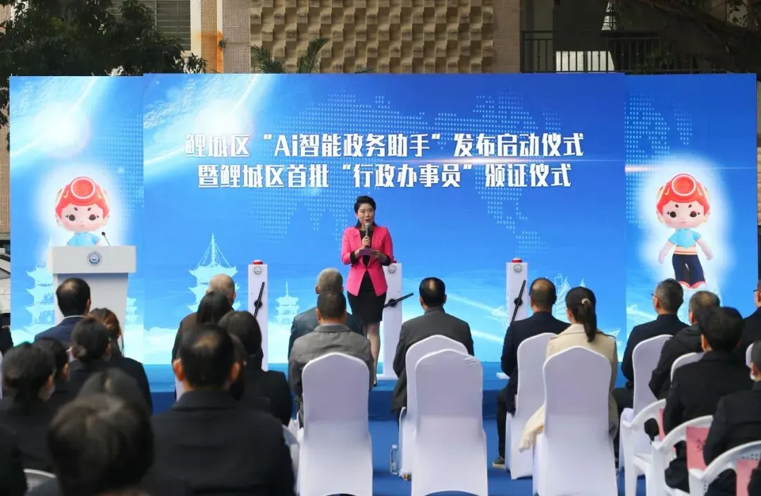 今天上午,鲤城区举行“AI智能政务助手”发布启动仪式暨首批“行政办事员”颁证仪式。泉州市行政服务中心管委会主任陈家强,鲤城区人大常委会主任林清泉、区政府副区长吴小纲参加活动。