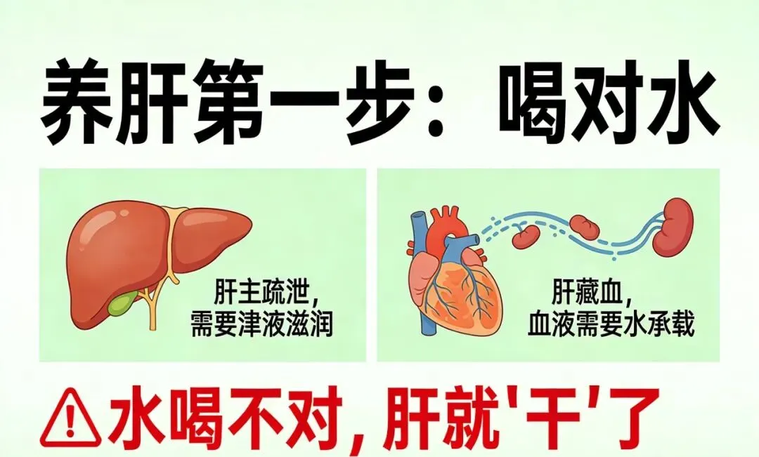 肝主疏泄,需要津液滋润;肝藏血,血液需要水来承载。水喝不对,肝就“干”了。