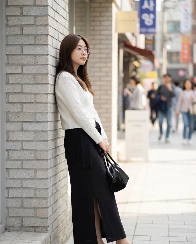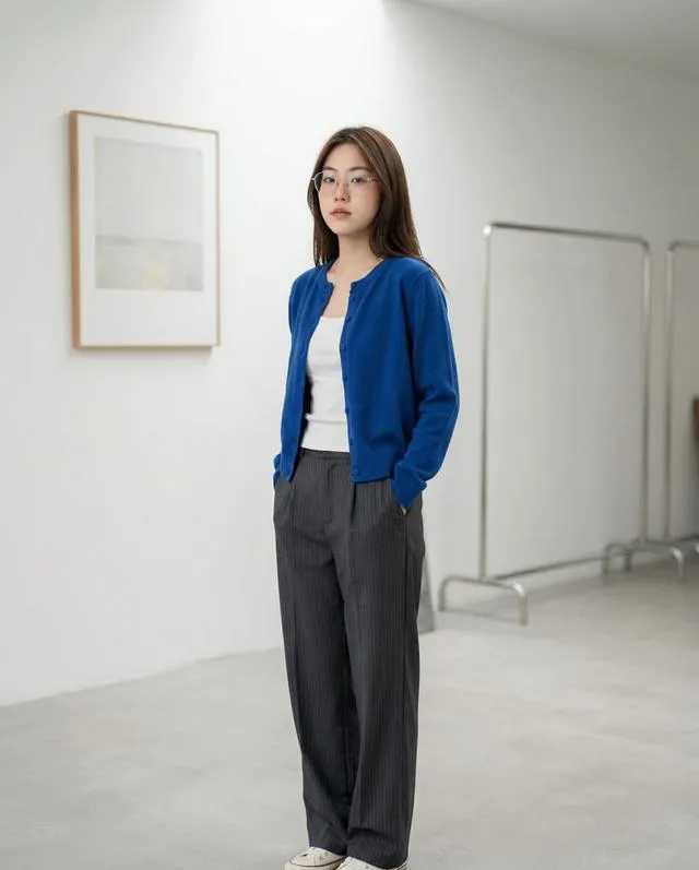 如果真的想单穿,下装必须“压得住”。我试了,配轻盈的百褶裙是灾难。但换成一条有筋骨的深蓝色直筒牛仔裙(Zara打折159元),再把开衫的袖子随意卷起两褶,感觉就对了。重点:鞋子一定要选有存在感的厚底乐福鞋或者短靴,把视觉重心拉下去,就不会头重脚轻。