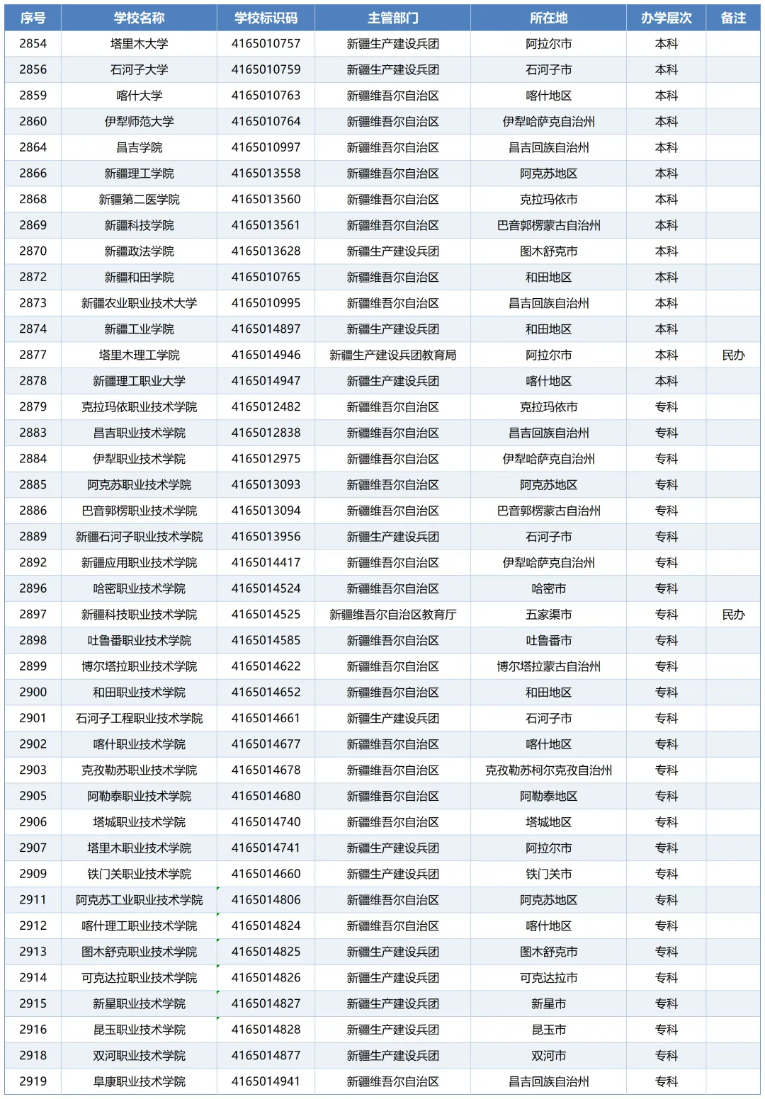 (16)克孜勒苏职业技术学院,位于克孜勒州阿图什市,距离乌鲁木齐市1422km,乘坐火车需要18-25小时,终点站为阿图什站。