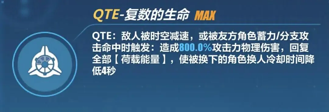 普罗米修斯的QTE触发条件非常简单,队友分支/蓄力攻击命中敌人或敌人时空减速均可触发。QTE入场时回复全部动能并为全队回复SP,同时减少离场角色换人CD,大幅缓解循环压力。
