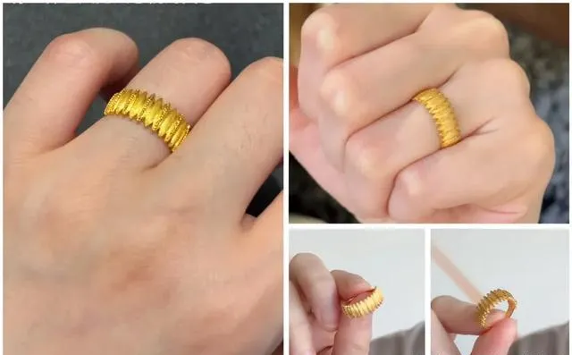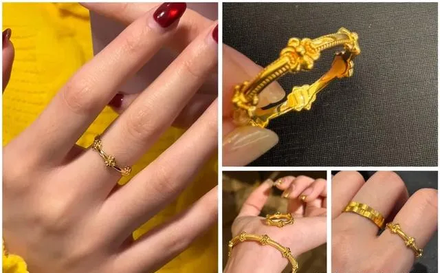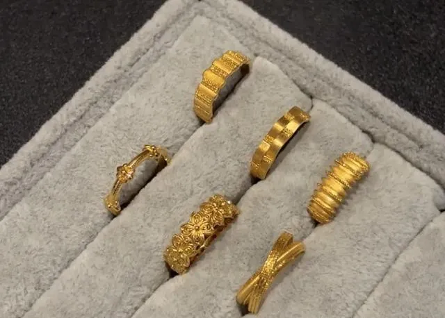 说实话 我买这些戒指的时候完全没想过什么保值不保值 就单纯觉得好看 喜欢那种极繁的设计感 每一款都有不同的纹理和工艺 有的是古法金的那种磨砂质感 有的是镂空编织 还有的做成了花朵造型 戴在手上确实显气质 也不会太夸张 日常搭配刚刚好 那时候就觉得 女人嘛 总要对自己好一点 偶尔买点喜欢的东西犒劳自己 没什么不对的