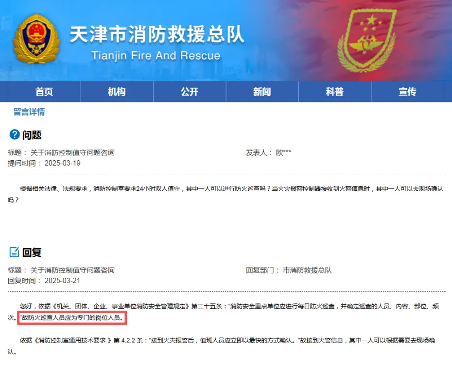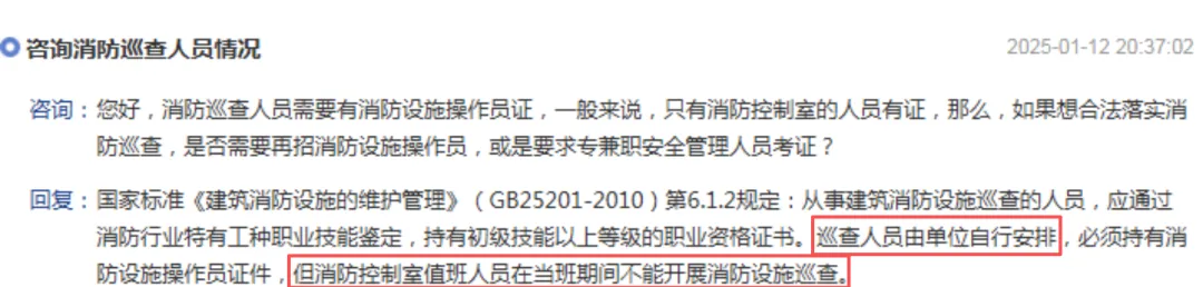 对于消控室值班人员能否在值班期间外出巡查,北京总队和天津总队已经给了明确答案,【不能】,这样一来巡查人员还要单独设置一个岗位,太牵强了。【评论区聊聊您的看法】