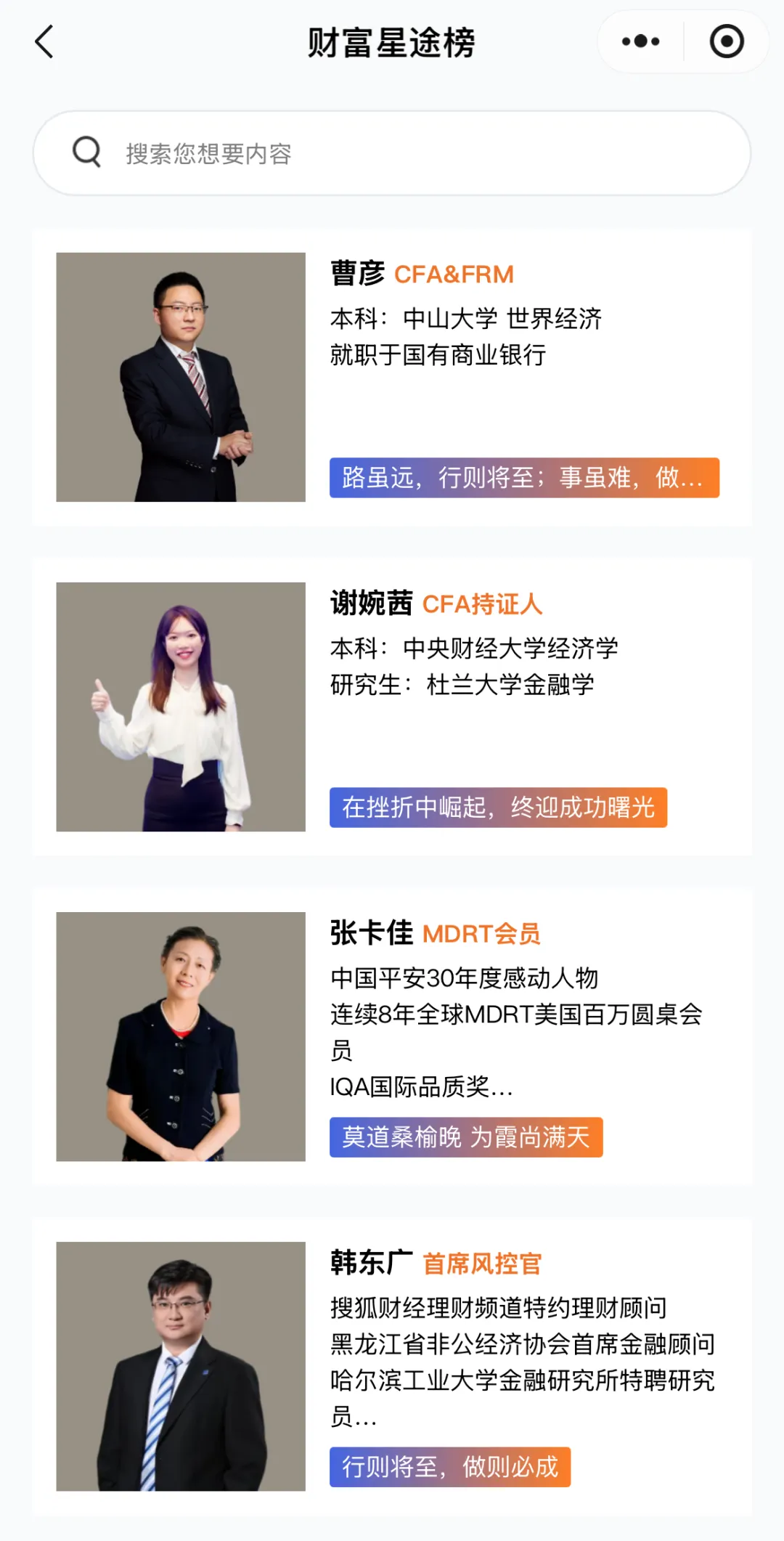 【财富星途榜】展示金程优秀学员的真实成长轨迹与成果。在这里,保险代理人能汲取前行力量,也能被更多人看见。