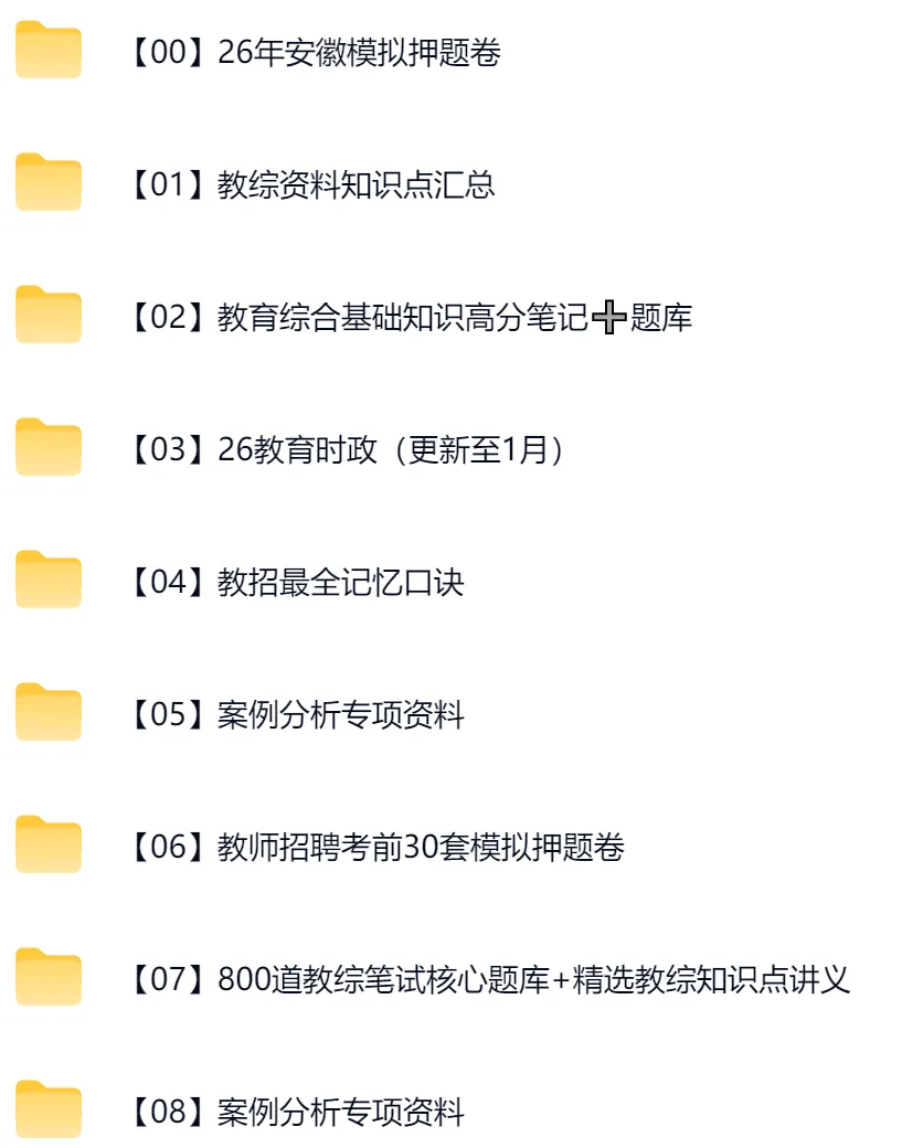 26年安徽教师招聘教综模拟卷,PDF电子版,含26lg教综、JS教综、MS教综、XR教综、五花肉、明S试卷等