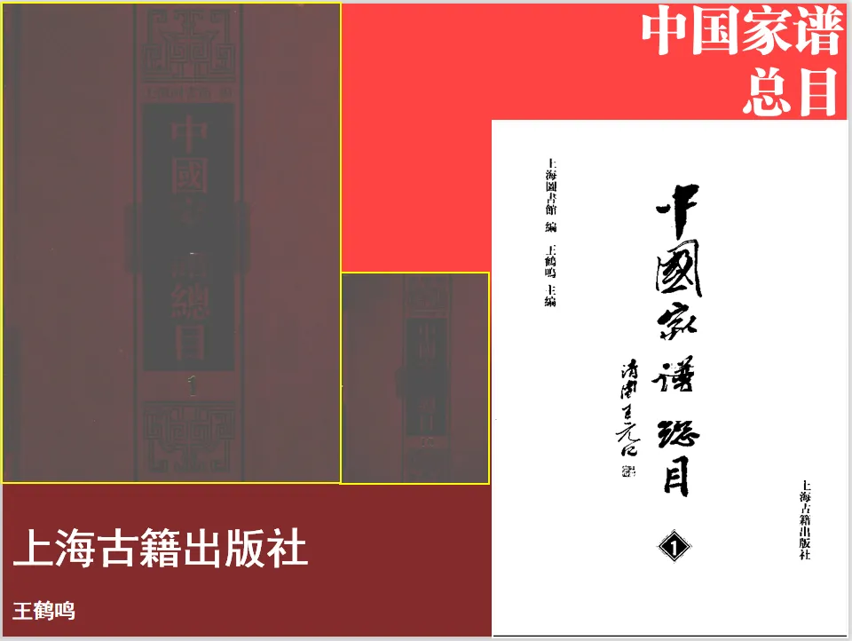 今上海图书馆在其号称“中国家谱半壁江山”的馆藏基础上,又广征国内外民间及收藏机构的家谱资料,编纂成皇皇大观的一部家谱总目(全十册)。该总目对现存中国家谱的修纂、年代、版本、各姓氏先祖、收藏者等情况作了较详尽的著录,为进一步挖掘家谱的史料价值奠定了深厚的基础。