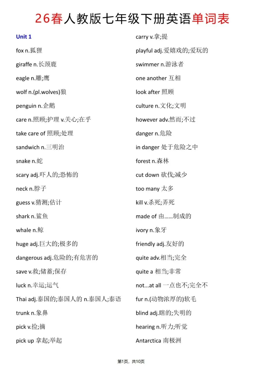 【26春人教版】七下英语单词表(电子版可打印)