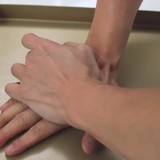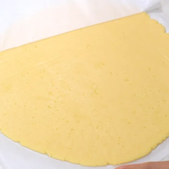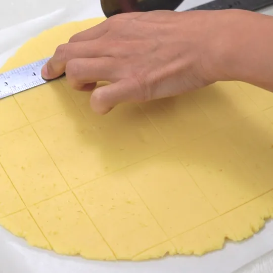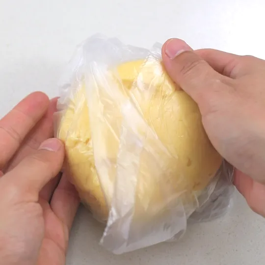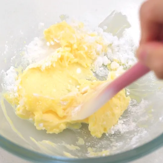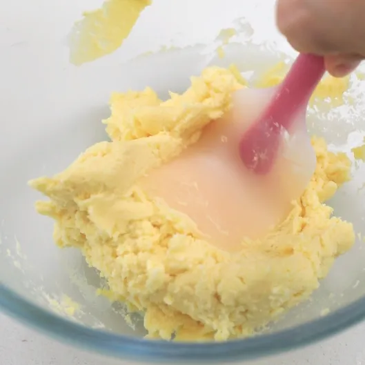 用刮刀切拌面糊,只要看不到干粉的状态就好了,如果你把面团捏光滑了,曲奇反而就不酥了。