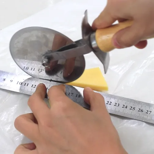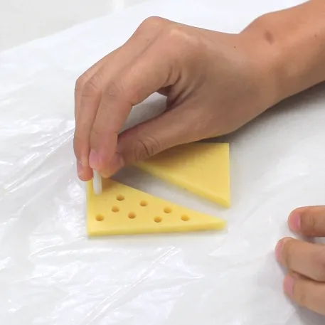 然后用吸管在饼胚上打孔,操作时,其余的饼胚会因为回温而变软,大家可以先放入冰箱冷藏,打孔时再拿出来。