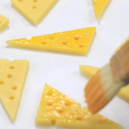 全部整形好,在饼干表面刷蛋黄液,羊毛刷比硅胶刷更好,硅胶刷带起的蛋液太厚,容易糊住花纹。