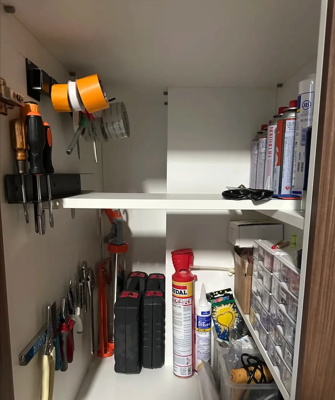 感冒季找药永远乱成一锅粥。跟着晃晃做了抽屉分格,用可变形的塑料隔板井字卡位,药品全立着放。柜门后烟盒收纳挂起来,体积小的用完自动掉下新的一条,取用非常省事。以前翻药盒最怕洒一地,现在用完直接重新排列,一贴再难搞乱。药味也没以前那么重了,柜子小门缝通风,安全多一层。